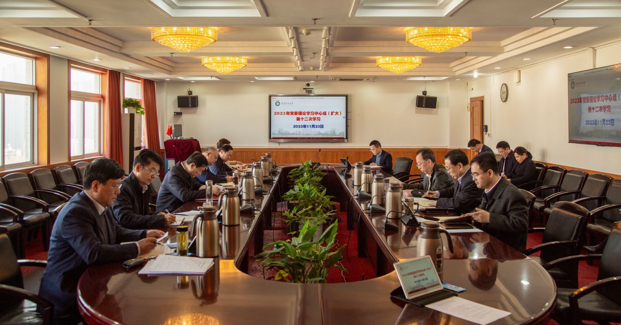 武科大网讯 11月23日,学校在青山校区主楼1610会议室举行党委理论学习中心组(扩大)第十二次学习。党委书记徐雁冰主持学习会议并讲话。党委副书记、校长倪红卫和全体党委常委参加学习。