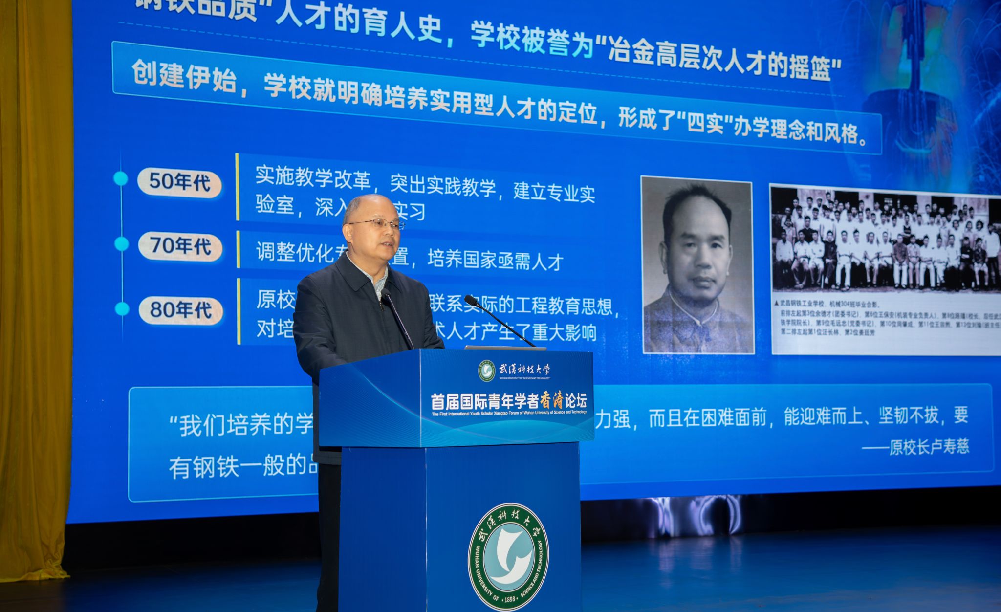 倪红卫作题为《书百年厚蕴 创一流发展》的大会主旨报告,从人才培养、学科发展、师资建设、科研成果产出、服务社会、校园文化六个方面系统讲述了学校126年的发展历程和辉煌成就。倪红卫表示,126年来,历经岁月更替、校址变迁、校名更迭,学校始终与国家和民族同命运、共呼吸,担民族之责、应兴国之需。如今站在新的起点上,学校比历史上任何时候都更加需要和渴求海内外青年学者走进武科大、选择武科大、发展武科大,也更有信心和实力为每一位有志投身武科大事业的青年才俊构筑事业大平台,搭建人生大舞台。诚挚邀请更多青年学者加入武科大,与学校携手同行,共创美好未来。