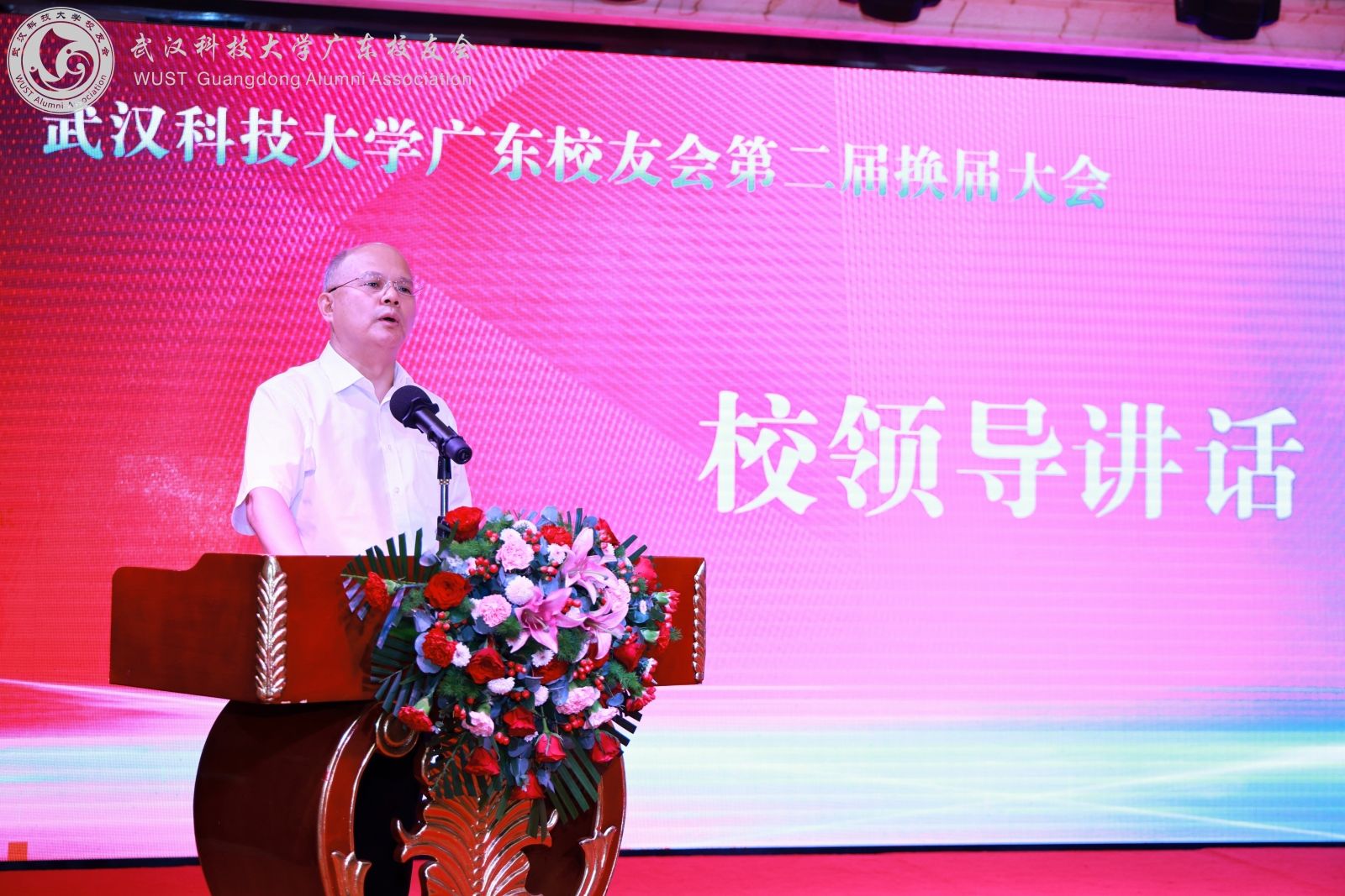 新一届理事会会长李烈军致辞,表示换届是新开端,将积极团结校友,做好桥梁作用,通过多元活动服务校友、母校与大湾区发展,融入本地各方面,投身“百千万工程”,发挥武科大校友“钢铁品质”,推动共同发展,深化鄂粤合作与两地联动,成为发展新动能,为大湾区作贡献。