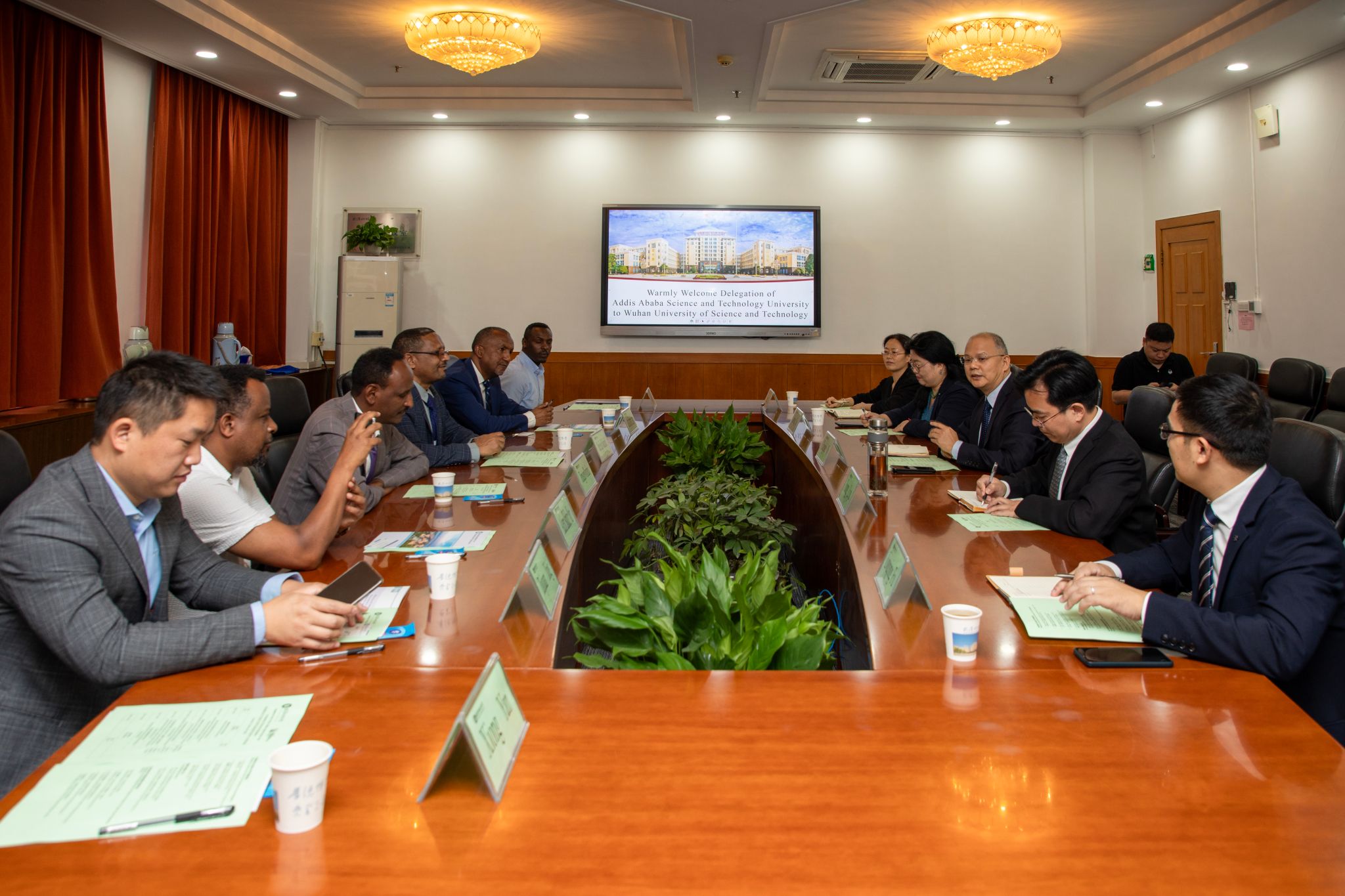 武科大网讯 10月8日,埃塞俄比亚亚的斯亚贝巴科技大学校长Dereje Engida Woldemichael一行7人来访我校,洽谈两校在教师互访、学生交流、联合科研等方面的合作。校长倪红卫、副校长吕勇出席会议。