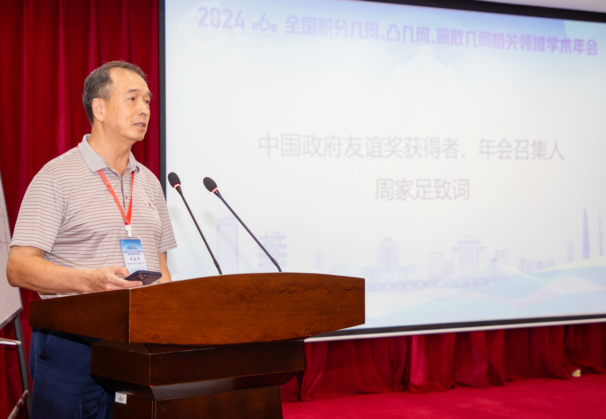 闭幕式上,中国政府友谊奖获得者、年会召集人周家足讲话,回顾了年会从第一届至今的历史,向任德麟等老一辈数学家致敬,向一直以来关心支持积分几何、凸几何、离散几何相关领域发展的专家学者表示感谢,希望更多国内几何学者能参与其中,团结互助,共同取得优异的科研成果。