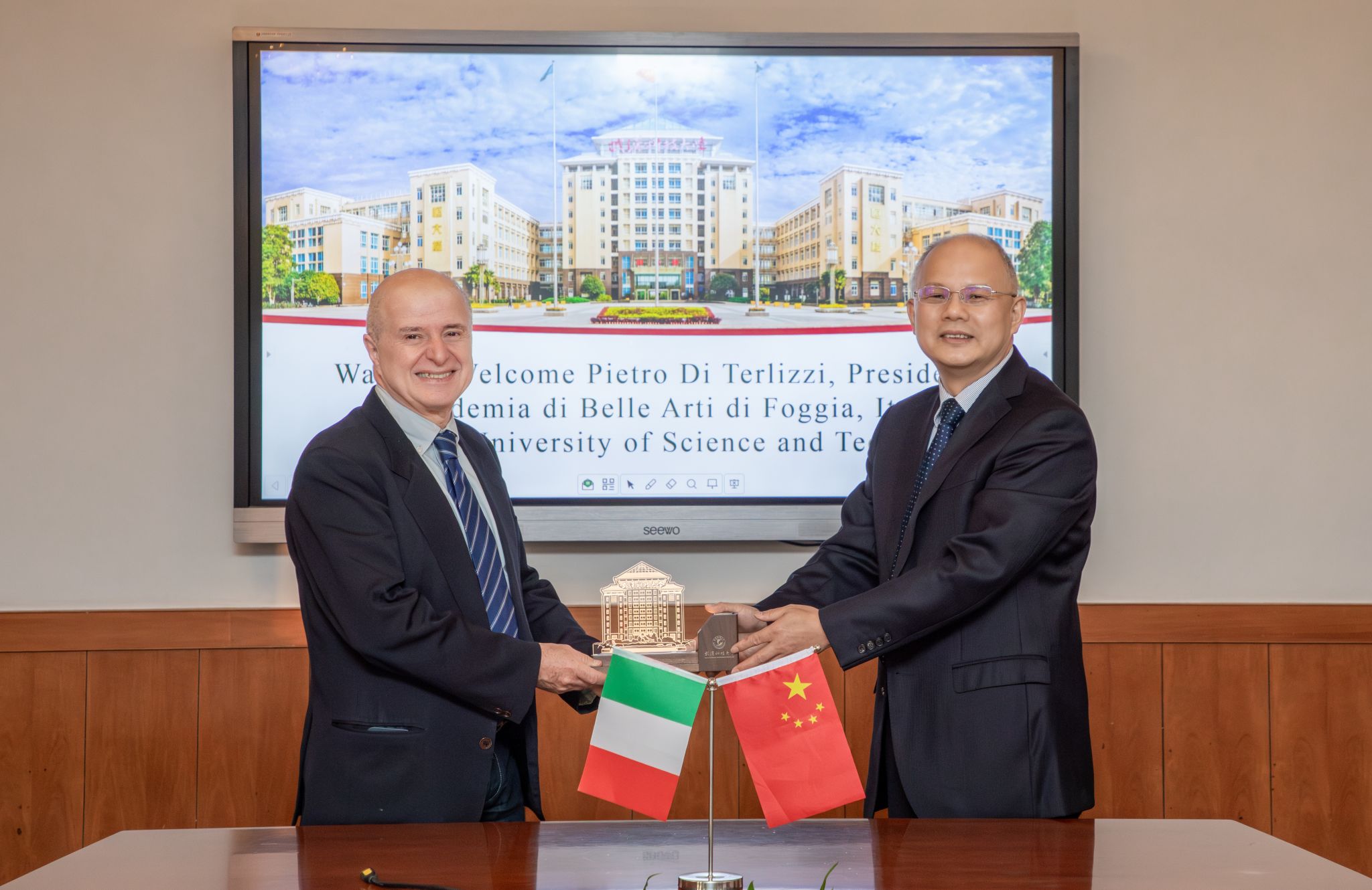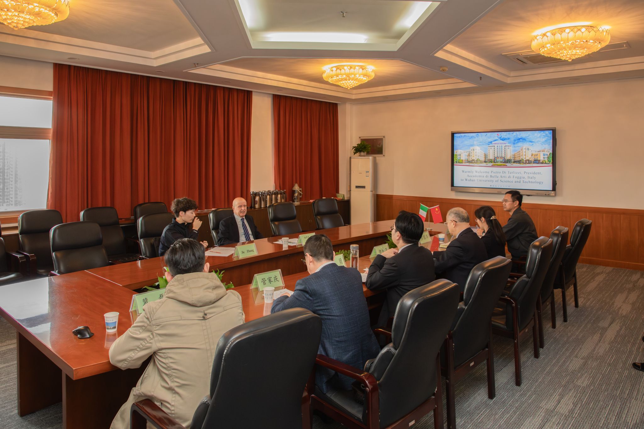 彼得罗感谢我校的盛情接待,简要介绍了意大利福贾美术学院的办学情况,并对两校间已开展的合作项目给予了高度评价。彼得罗表示,武科大的办学规模、校园建设给他留下了深刻的印象。中西方教育方式不同,需要更好地融合和理解,希望双方在今后的合作中能够优势互补,共同推进艺术教育的国际化发展,为培养具有国际视野的艺术人才携手努力。