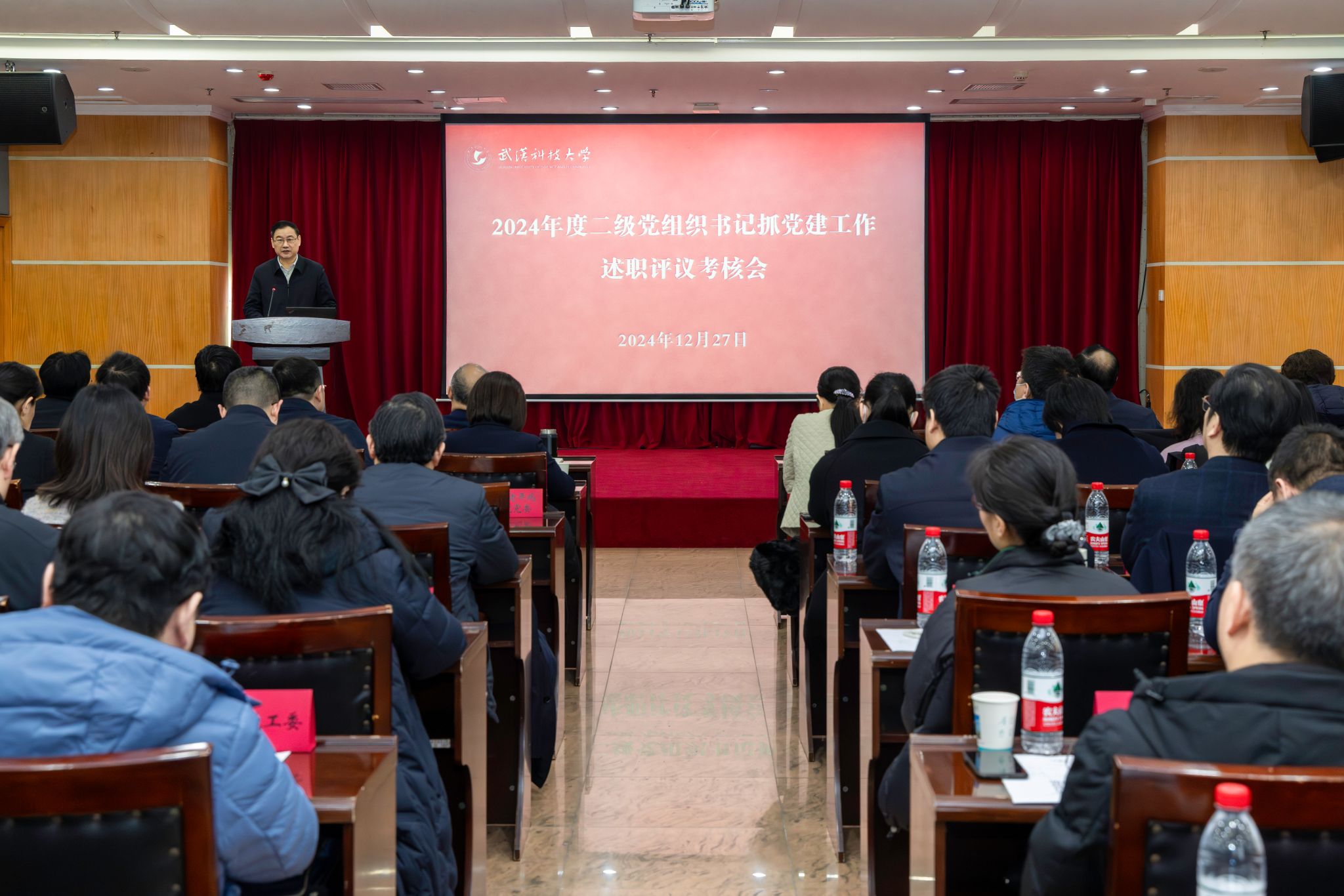 武科大网讯 12月27日上午,学校在青山校区主楼18楼会议室召开2024年度二级党组织书记抓基层党建工作述职评议考核会。校党委书记徐雁冰对述职情况逐一点评,充分肯定各二级党组织的工作,并就下一步工作重点和努力方向提出要求。党委副书记、校长倪红卫及全体校领导出席会议,会议由党委常委、组织部部长刘时新主持。
