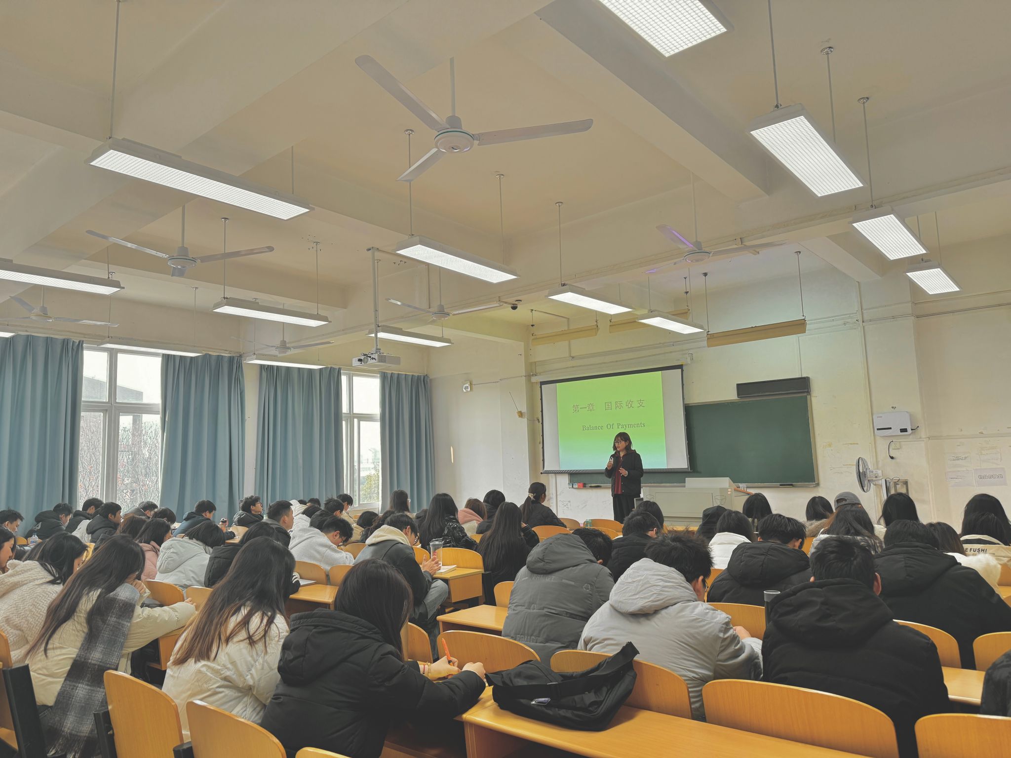 当前金价涨幅惊人,这一现象与国际金融环境有何关联?围绕这一热点,在主楼13309教室,法学与经济学院教师王倩结合国际金融动态展开教学。她首先介绍了金融学学科体系,清晰阐述其定位与性质,帮助国际贸易与投资学专业的学生建立系统认知。她引用《美元多头承压,欧元与日元成为市场焦点》等热点事件,针对美国利率政策提出问题,引导学生运用基本理论剖析当前国际金融背景与环境变化,助力学生更好地理解复杂的金融现象。